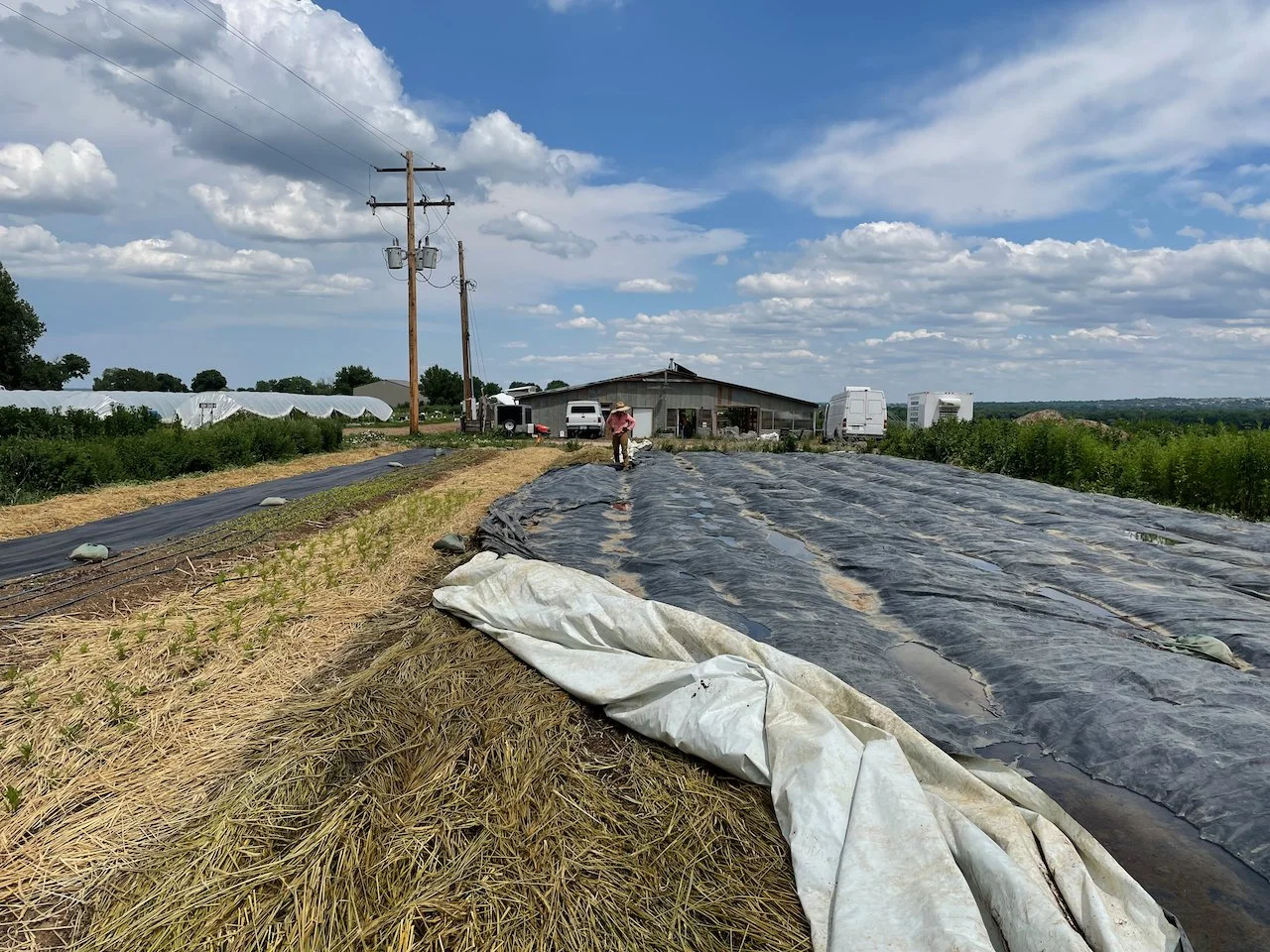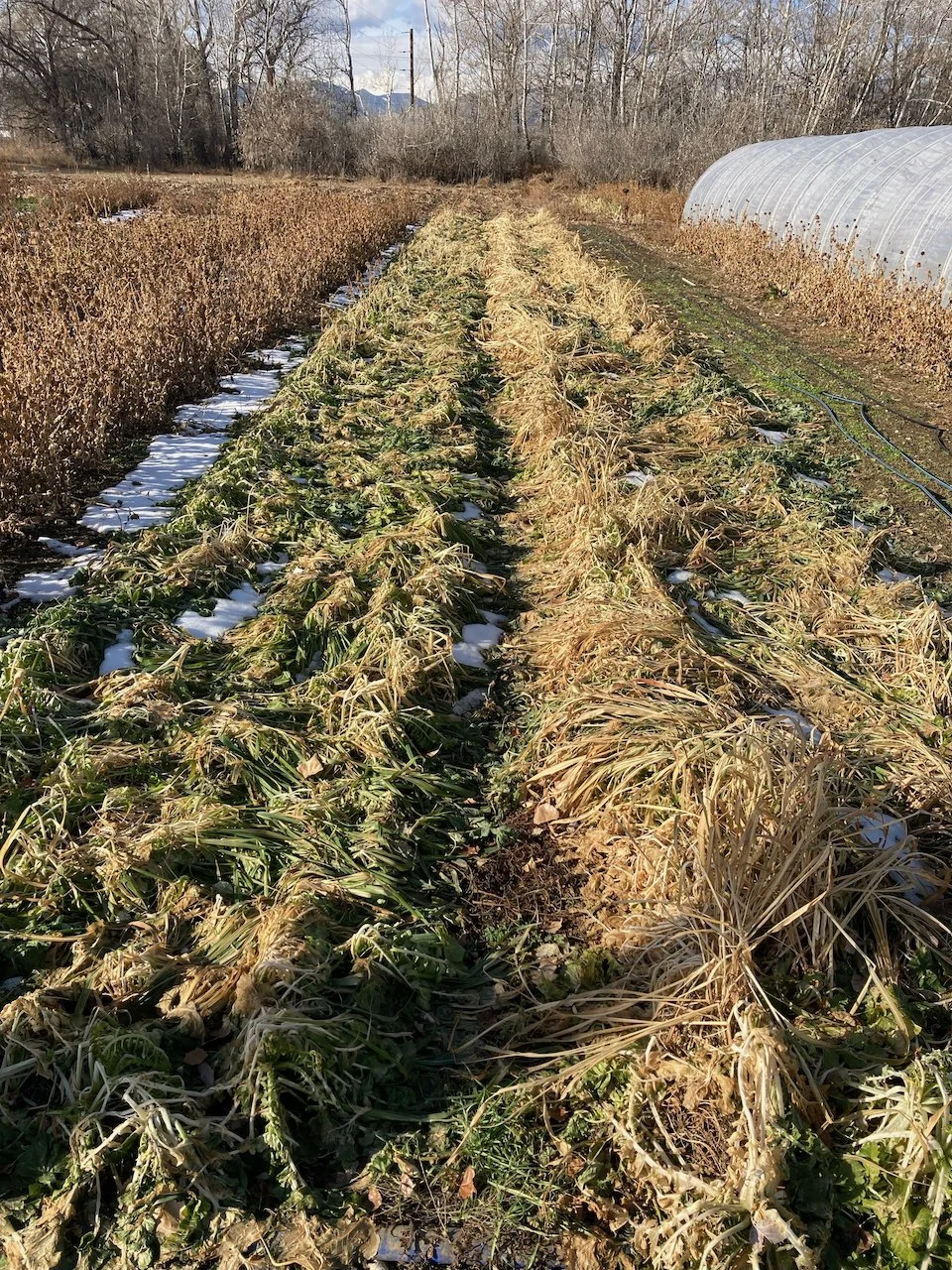 Resting our hoop house with a thick stand of winter-killed cover crop.