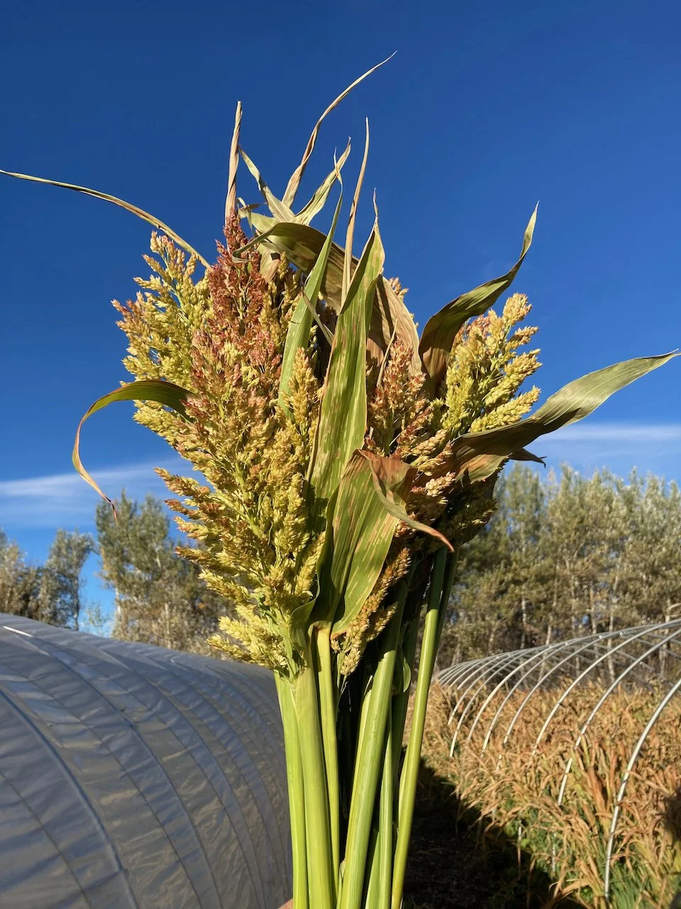 Gorgeous spikes of sorghum-sudangrass flowers. I like this even better than broom corn!
