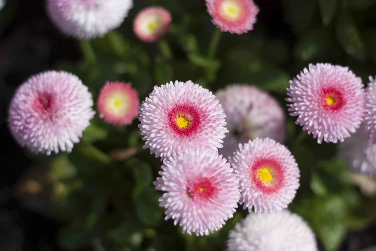 Paper Daisy, Helipterum roseum, ‘Large Flowered Hybrids’, ‘Goliath Tetra’, ‘Pierrot’: More strawflower-like creatures, in different colors and slightly different shapes, some with dark eyes. Seed from GeoSeed and Annie’s Annuals.