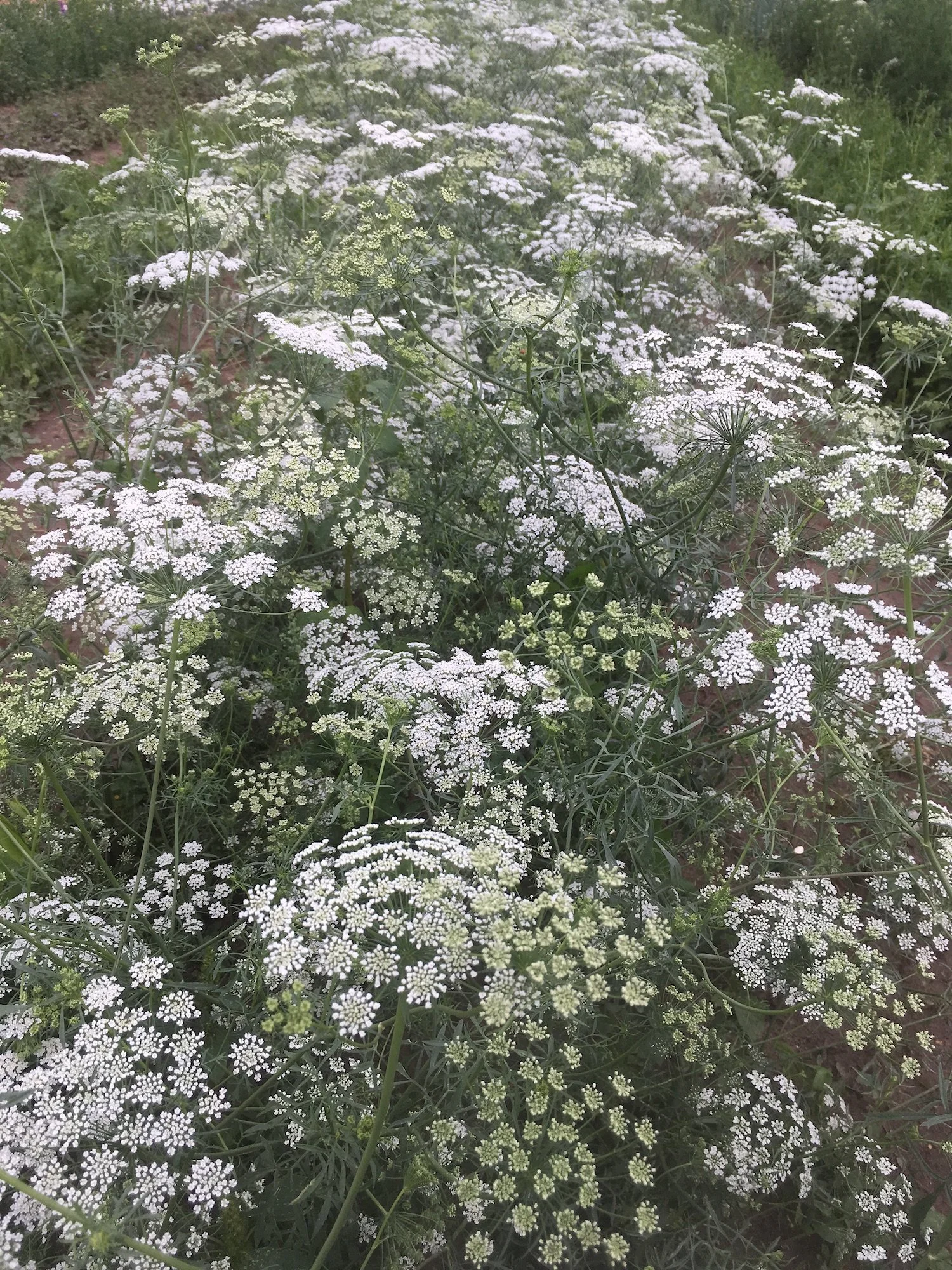 Both A. visnaga and A. majus are easy to save, in that they do not require isolation, are usually going to seed before you’re able to get the bed turned over, and they’re easy to process. Simply wait for the seed heads to turn brown and begin to shatter when you shake them; then snip them off into a labeled bucket. Dry on a screen or hanging upside down in a bag for about a week to ensure they’re really dry. Then just rub the heads between your hands or on a screen to separate them from the umbel.