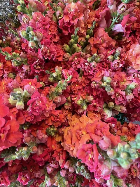 Snapdragons are a common florist flower, but locally-grown snapdragons have an amazing quality: their scent. To me, many of them smell like jelly beans, or Coca-Cola, or sometimes just cucumbers. Did you know snapdragon florets are edible? If you find a particularly beautiful one, maybe just toss it into your salad or float it on top of your cocktail ;)